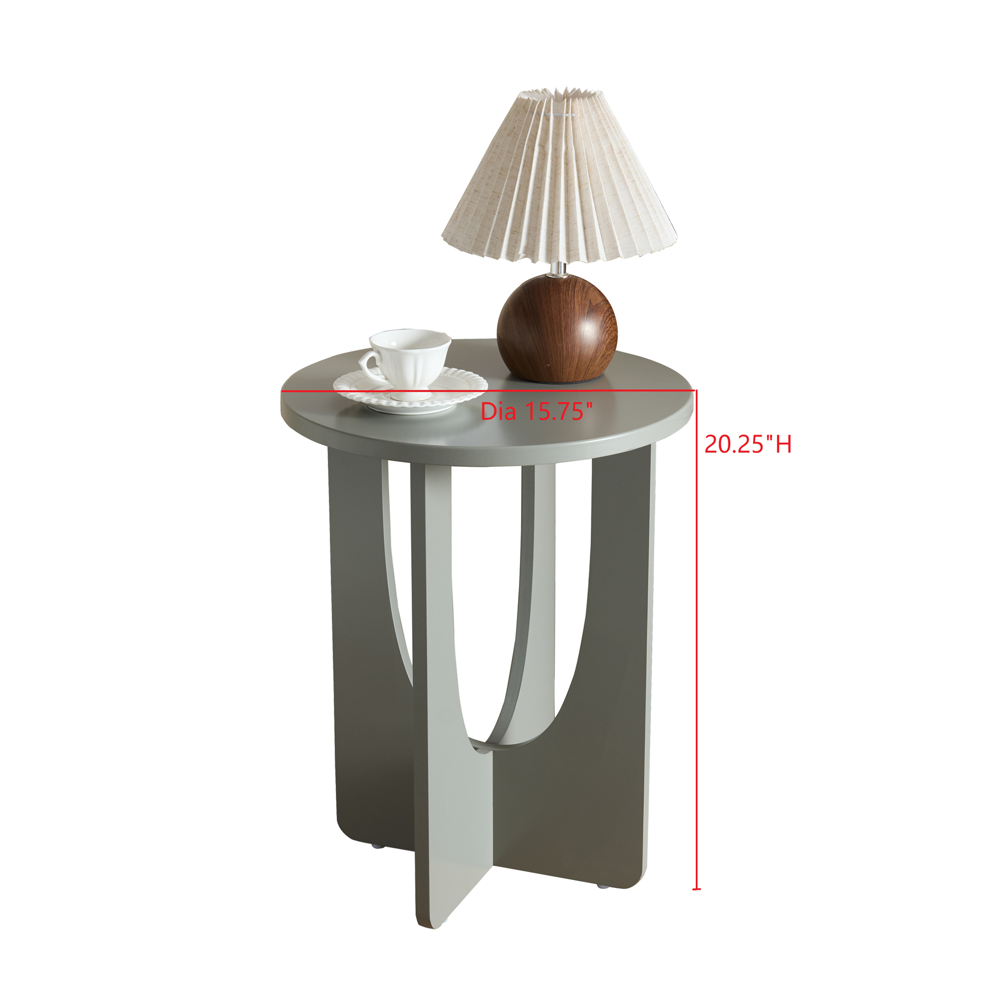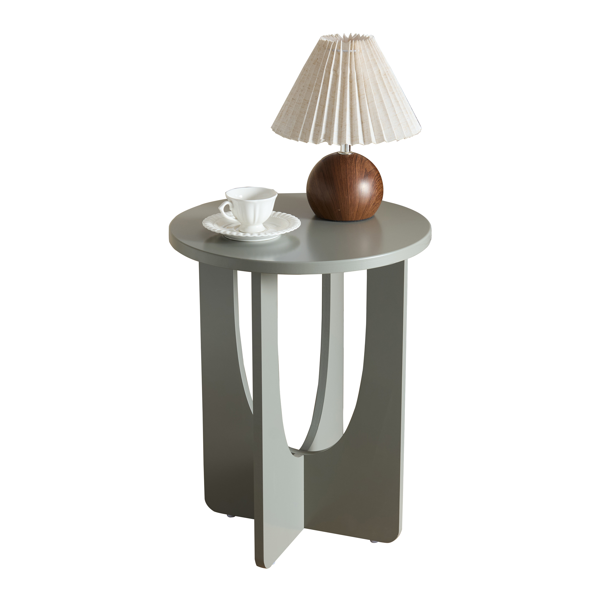 Elevate your living space with this Amelia modern console table, featuring a smooth round tabletop in a grey finish and a unique curved-panel base that adds an artistic, contemporary touch. Compact yet sturdy, it’s perfect for placing beside a sofa or lounge chair to hold a lamp, cup, or decorative accents. Its minimalist design and durable matte construction make it an ideal accent piece for contemporary, Scandinavian, or modern interiors.