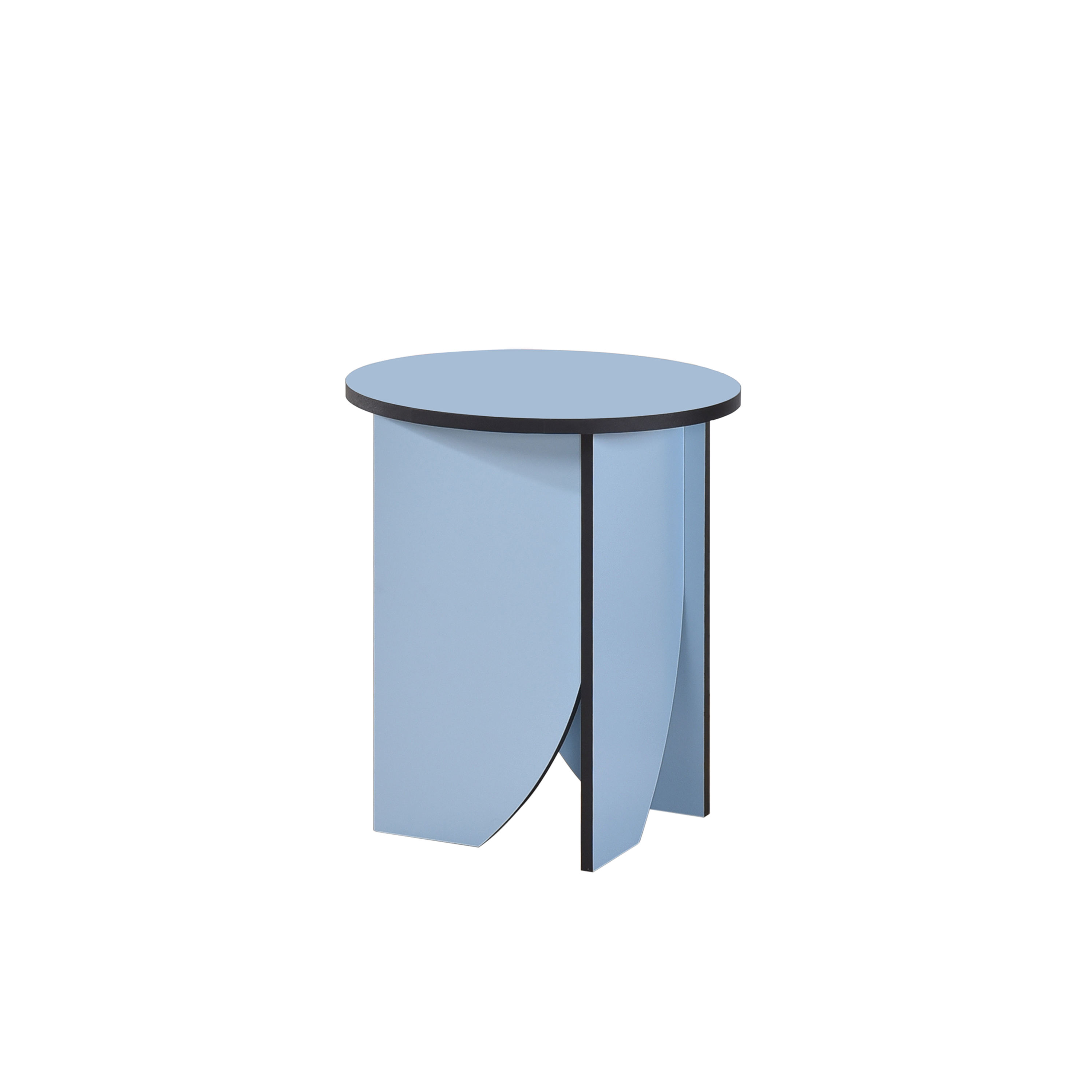 Bring contemporary flair to your space with this Zoe modern end table. Featuring a smooth, round top and distinctive intersecting base panels, it’s a statement piece that blends form and function. The crisp blue finish with contrasting black edges adds a bold, graphic touch, making it perfect as a side table for your sofa, a chic nightstand, or a stylish accent in any room. Durable and lightweight, this table offers a clean, sculptural look that elevates minimalist or modern interiors.