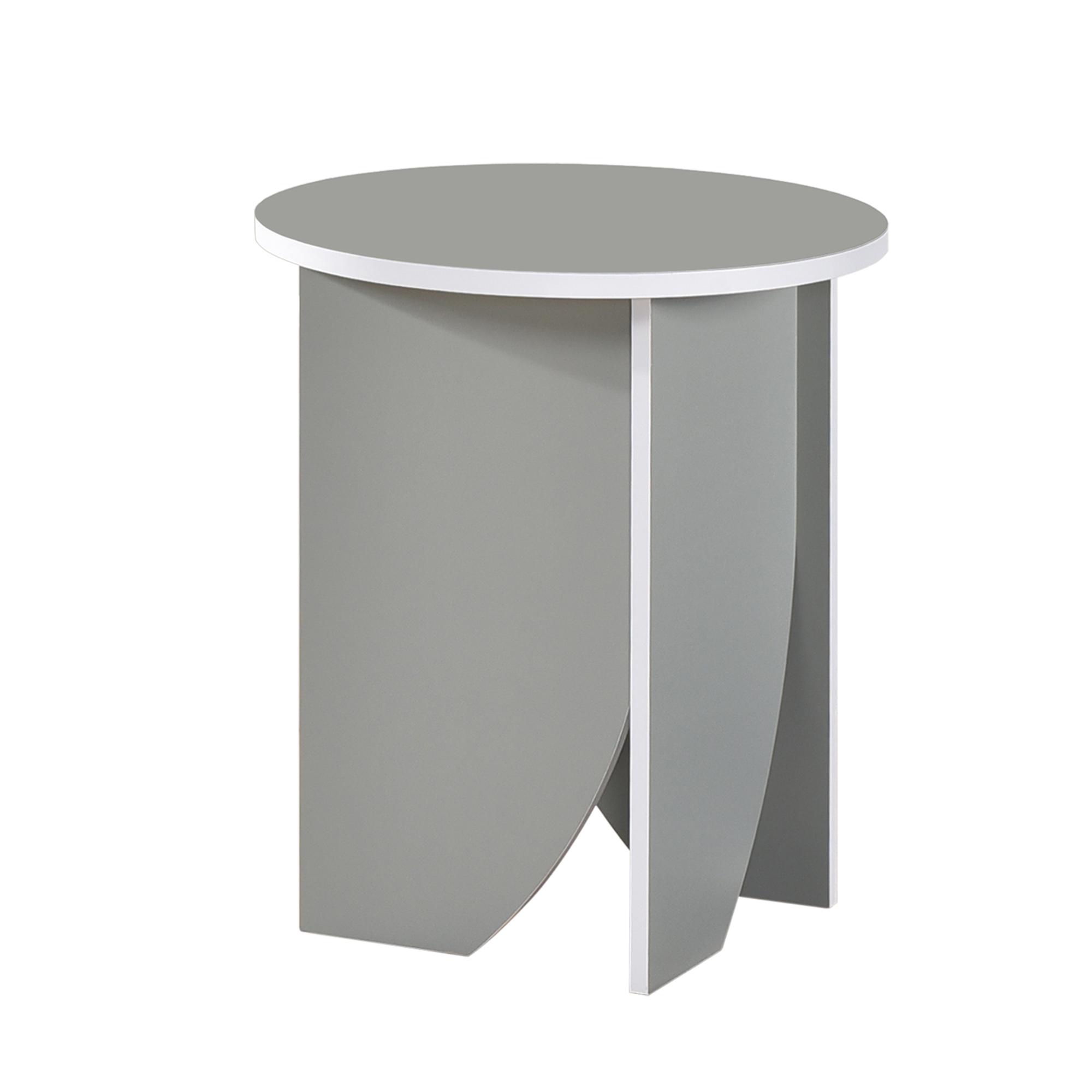 Bring contemporary flair to your space with this Zoe modern end table. Featuring a smooth, round top and distinctive intersecting base panels, it’s a statement piece that blends form and function. The crisp gray finish with contrasting white edges adds a bold, graphic touch, making it perfect as a side table for your sofa, a chic nightstand, or a stylish accent in any room. Durable and lightweight, this table offers a clean, sculptural look that elevates minimalist or modern interiors.