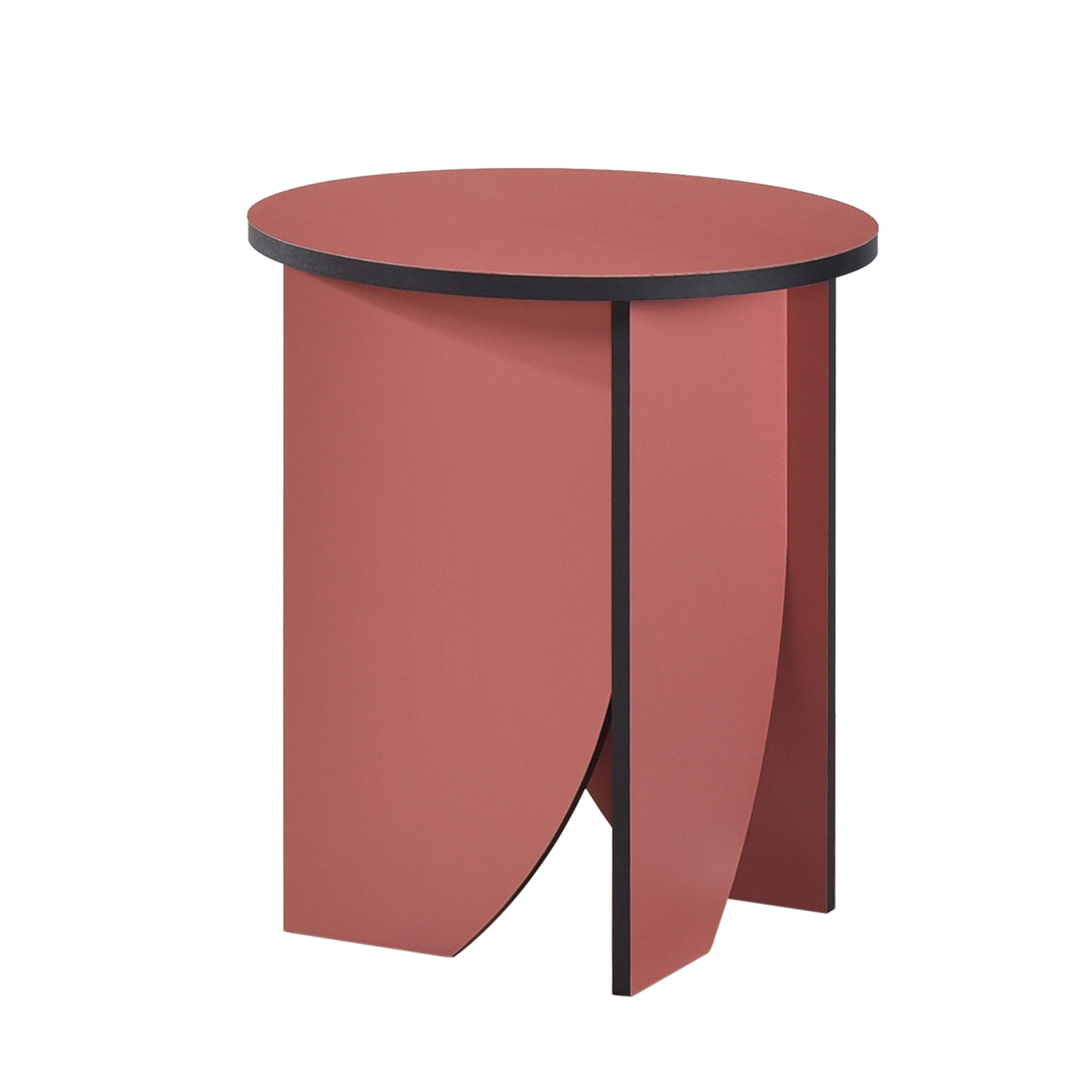 Bring contemporary flair to your space with this Zoe modern end table. Featuring a smooth, round top and distinctive intersecting base panels, it’s a statement piece that blends form and function. The crisp red finish with contrasting black edges adds a bold, graphic touch, making it perfect as a side table for your sofa, a chic nightstand, or a stylish accent in any room. Durable and lightweight, this table offers a clean, sculptural look that elevates minimalist or modern interiors.