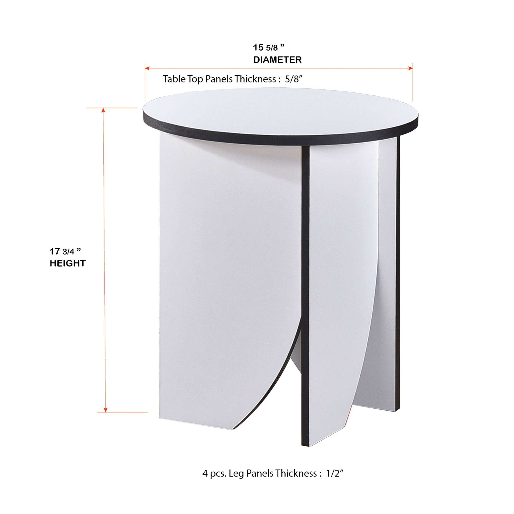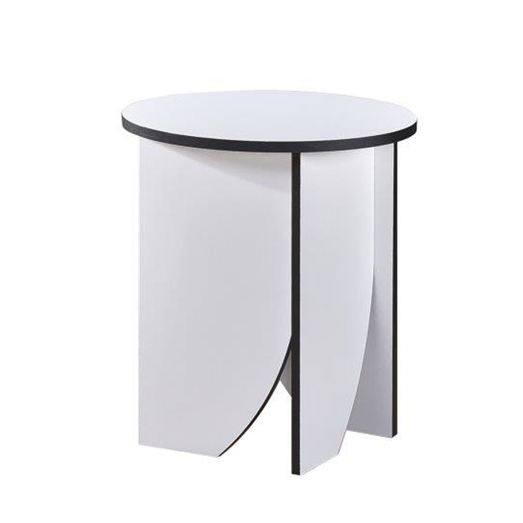 Bring contemporary flair to your space with this Zoe modern end table. Featuring a smooth, round top and distinctive intersecting base panels, it’s a statement piece that blends form and function. The crisp white finish with contrasting black edges adds a bold, graphic touch, making it perfect as a side table for your sofa, a chic nightstand, or a stylish accent in any room. Durable and lightweight, this table offers a clean, sculptural look that elevates minimalist or modern interiors.