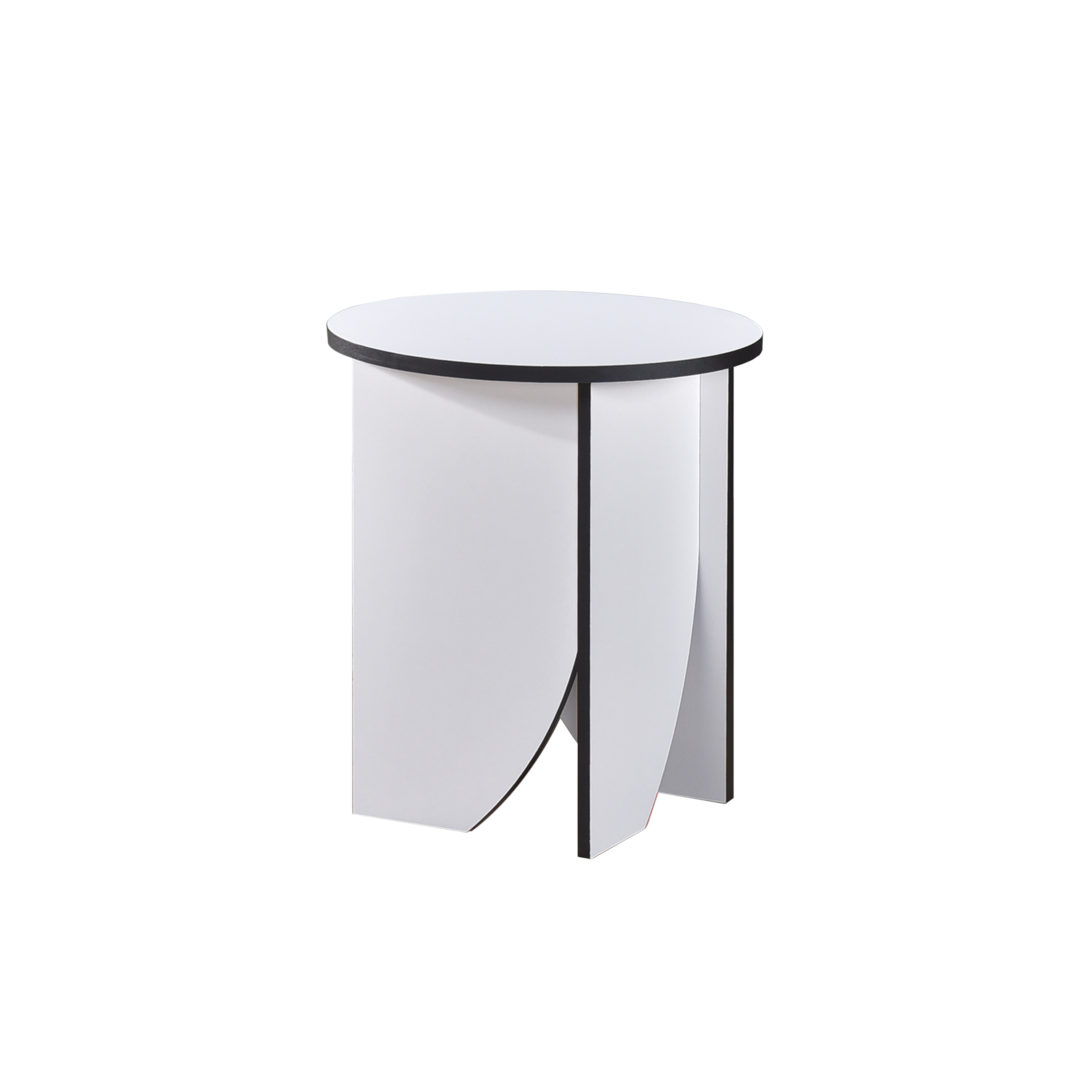 Bring contemporary flair to your space with this Zoe modern end table. Featuring a smooth, round top and distinctive intersecting base panels, it’s a statement piece that blends form and function. The crisp white finish with contrasting black edges adds a bold, graphic touch, making it perfect as a side table for your sofa, a chic nightstand, or a stylish accent in any room. Durable and lightweight, this table offers a clean, sculptural look that elevates minimalist or modern interiors.